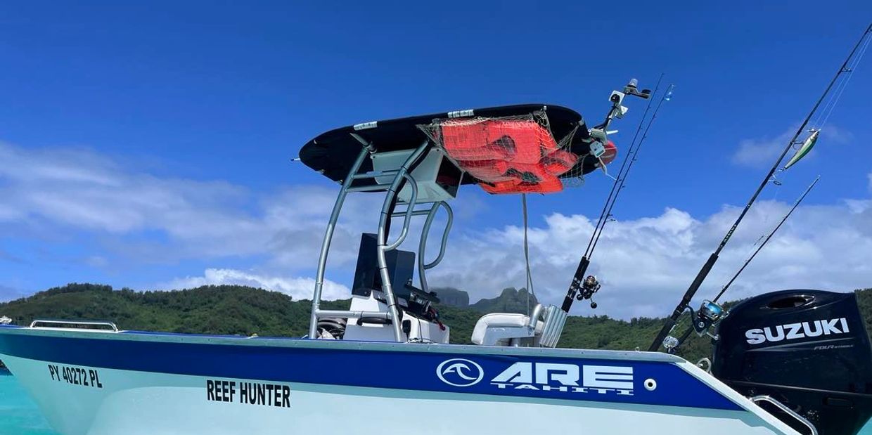 Our new 2023 Center Console has just arrived! This spacious 20ft boat is perfect for taking the family on a lagoon fishing trip around Bora Bora to target a large variety of reef species like Giant Trevally. Great for trolling and casting along the reefs!